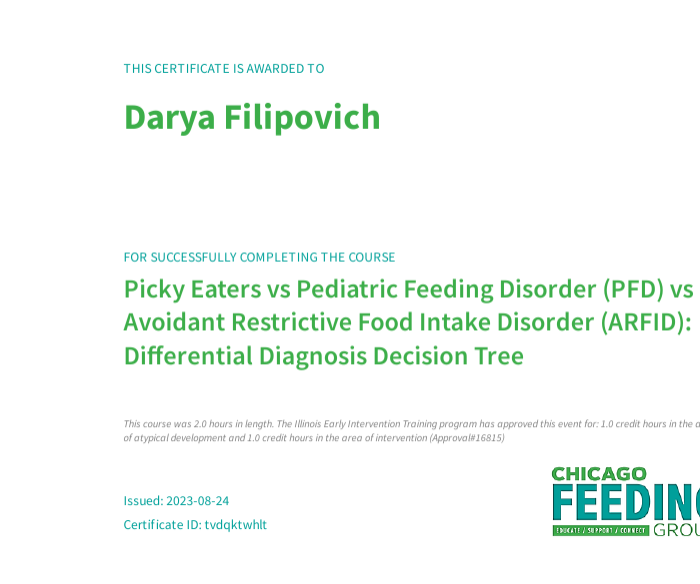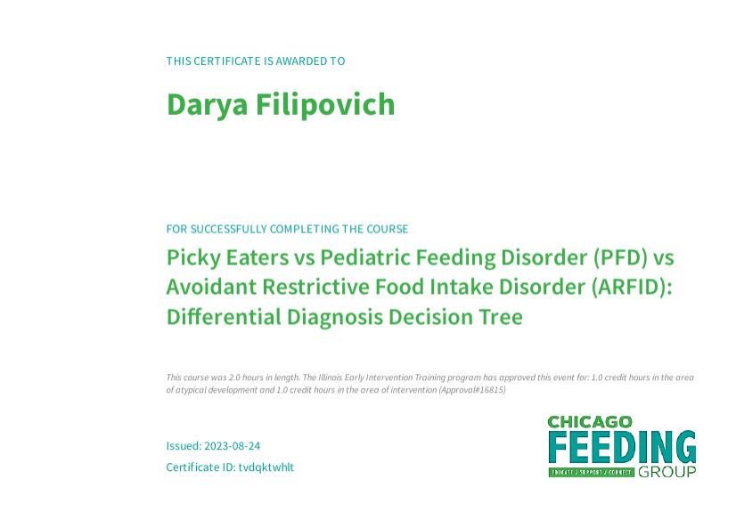 • 2023: Разборчивые едоки vs PFD vs ARFID: Дифференциальная диагностика, Chicago Feeding Group
