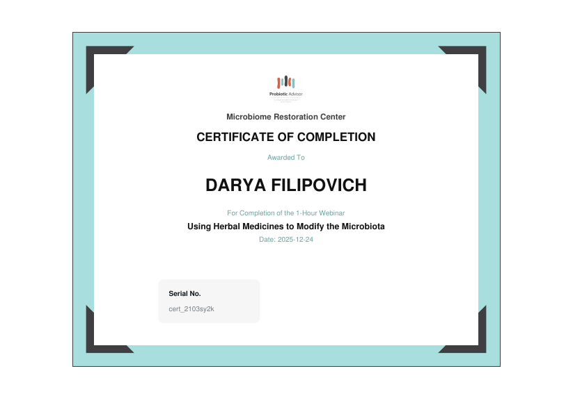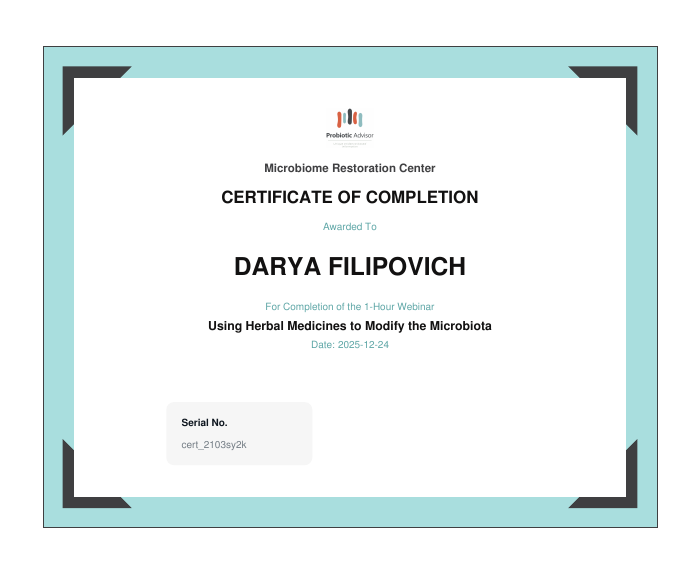 • 2025: Использование травяных препаратов для изменения микробиоты (Австралия)
