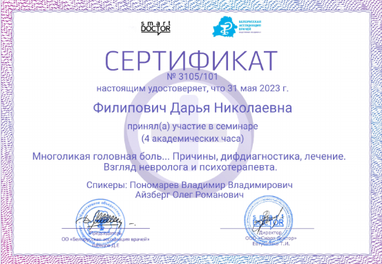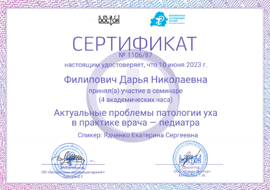 • 2023: Онлайн-школа педиатра, Smart Doctor LLC (Беларусь)
